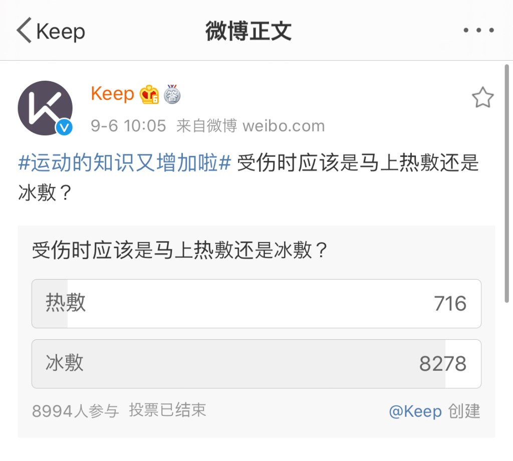 例えば、運動アプリ「Keep」のオフィシャルアカウントには、#運動に関する知識がまた増えた#というハッシュタグがある。二択クイズの形で、運動関連の知識を解説するシリーズだ。